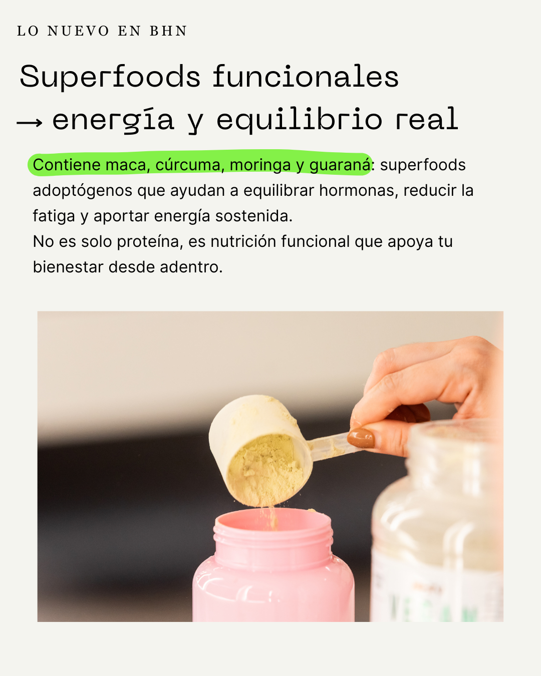 Con superfoods ricos en antioxidantes y micronutrientes que impulsan tu metabolismo, energía y bienestar diario.